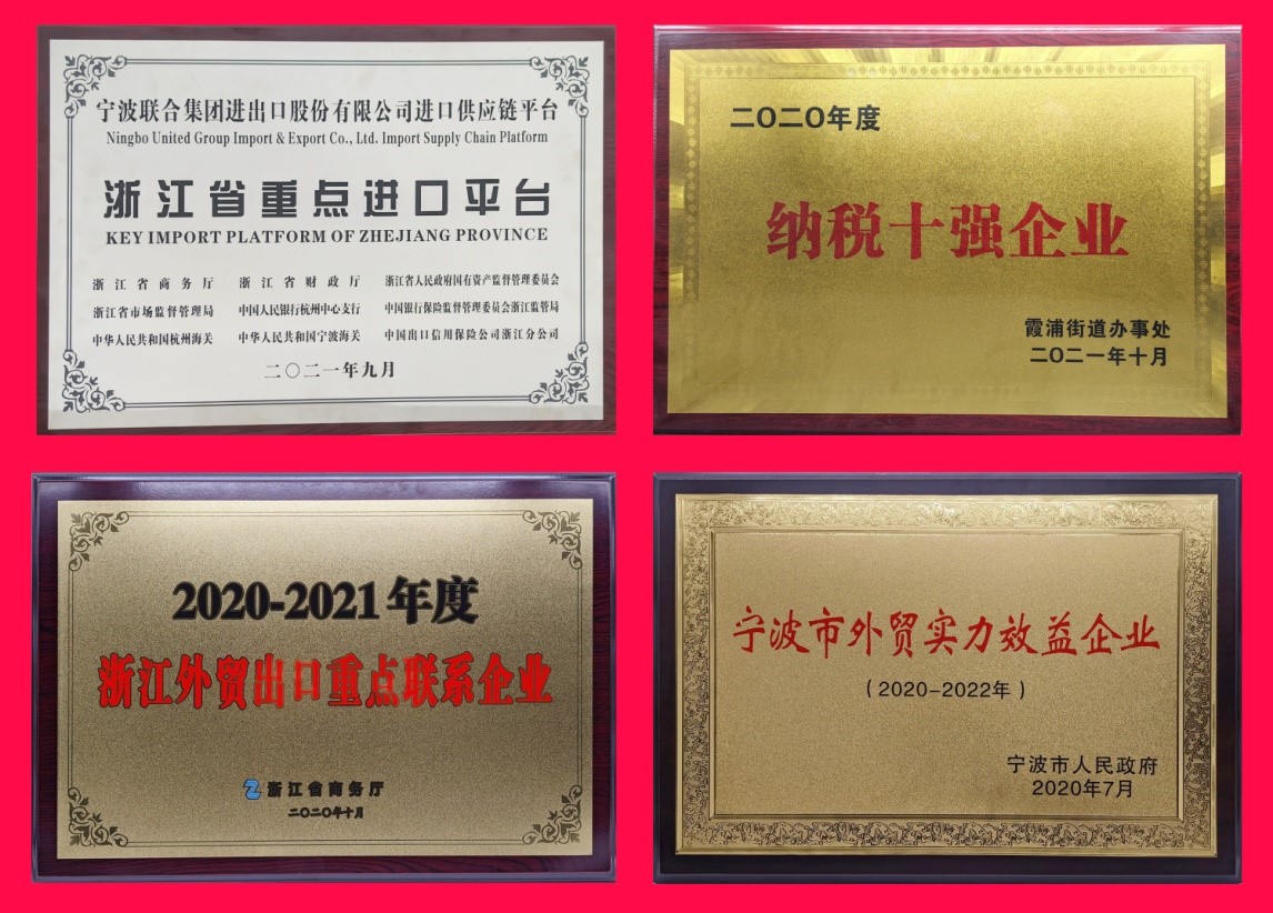 日前公司被评为2020年度北仑霞浦街道纳税十强企业,旗下子公司宁波联合天易通信息技术有限公司获评2021-2022年度浙江省重点培育电商平台企业。