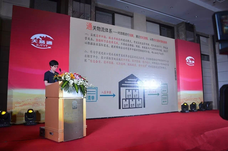 宁波联合进出口股份有限公司副总经理詹颖在发布会上详细介绍了天易通跨境电子商务综合服务平台的功能和特色。