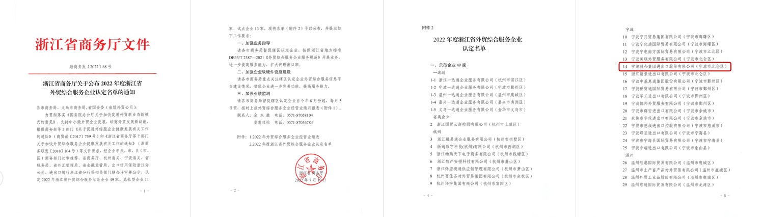 我公司被认定为2022年度浙江省外贸综合服务示范企业