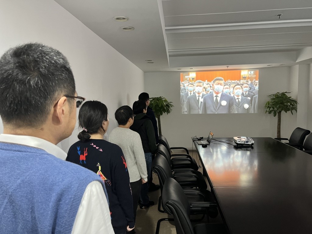 12月6日上午10时,江泽民同志追悼大会在北京人民大会堂隆重举行。进出口公司组织全体职工,在会议室集体收看江泽民同志追悼大会现场直播。职工们神情凝重,全体默哀,深切缅怀江泽民同志丰功伟绩,充分表达对江泽民同志逝世的悲痛和哀悼之情。