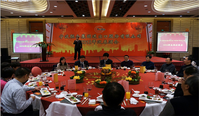酒会由詹颖总助主持,杨建新总经理致新春贺词,集团公司副总裁、公司董事长戴晓峻代表集团公司发表讲话并致祝酒词,王?副总经理宣读了公司2011年度先进班组、优秀员工名单,董事长戴晓峻、总经理杨建新分别为公司先进班组、优秀员工颁奖,祝贺并感谢他们一年来为联合进出口做出的突出贡献,鼓励在座员工向他们学习,继续努力,携手共创联合进出口美好的明天。整台晚会经联合进出口人精心设计,各部门积极参与,呈现出团队协作、多才多艺的进出口人风貌。晚会节目精彩纷呈,无论是动感十足的舞蹈、男女合唱还是小游戏,都赢得了阵阵掌声。晚会气氛热烈融洽、高潮迭起,穿插的抽奖更将晚会气氛层层推向高潮,现场成了一片欢乐的海洋。