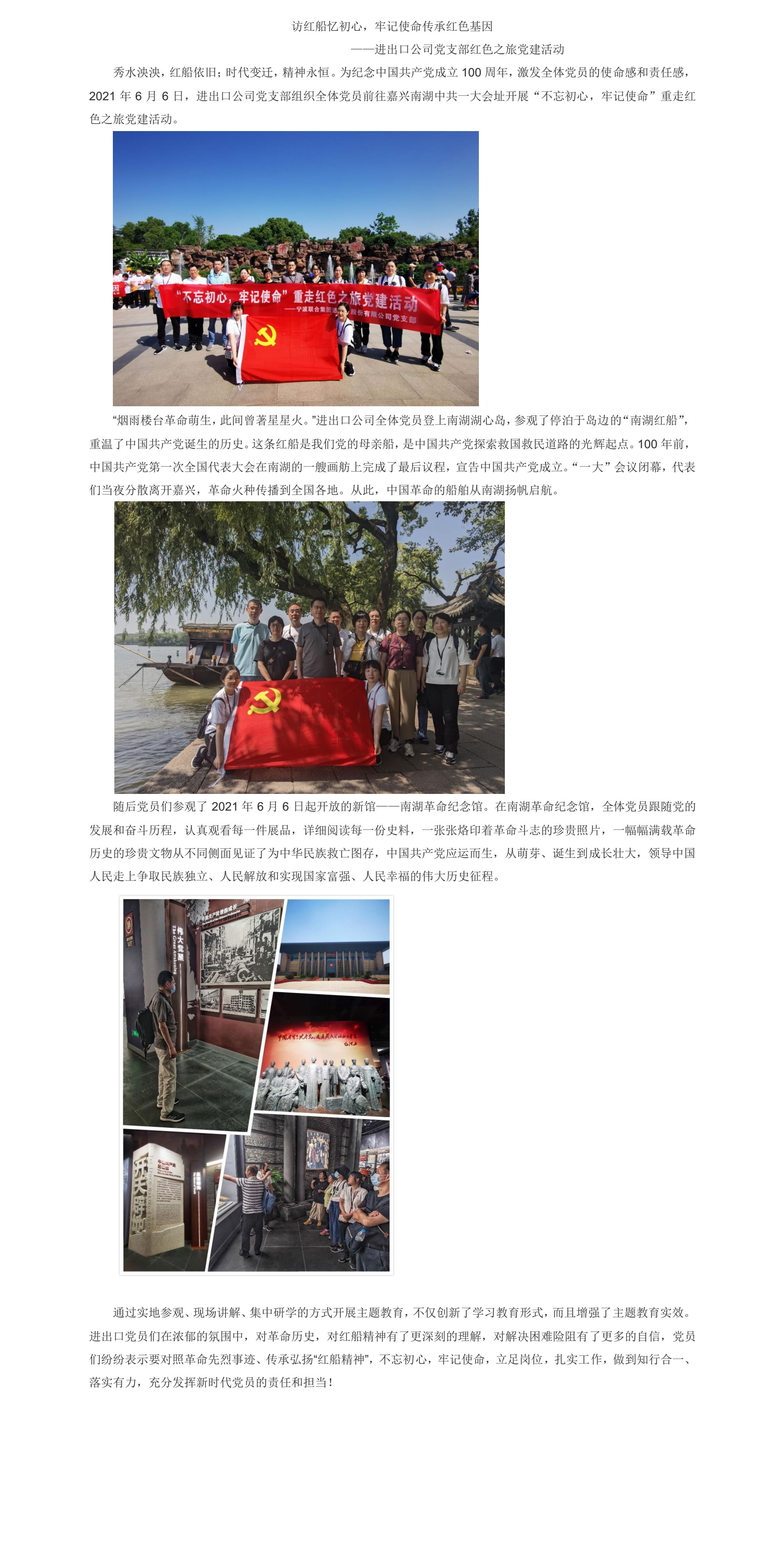 访红船忆初心,牢记使命传承红色基因 ——进出口公司党支部红色之旅党建活动
